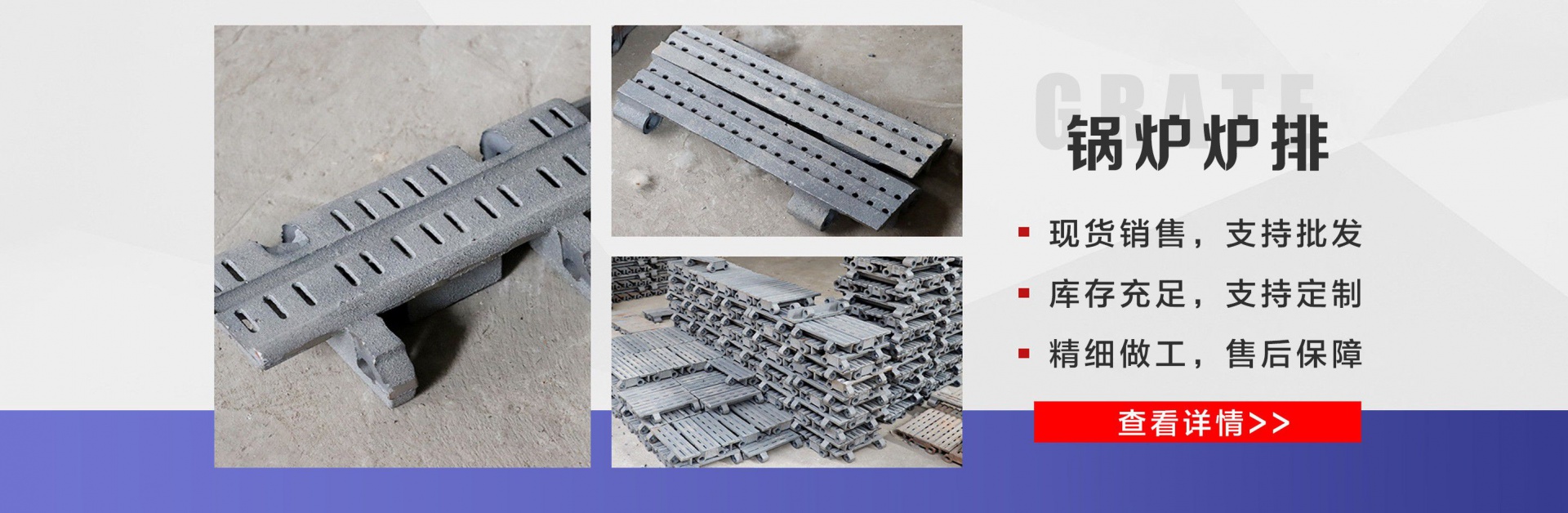 麗新機(jī)械配件廠位于“江北水城”之稱的聊城。公司主要銷售:鍋爐爐門,爐篦子,爐排片,鍋爐爐排,省煤器管,鍋爐風(fēng)帽,鍋爐配件等多種產(chǎn)品,公司堅(jiān)持以市場為導(dǎo)向、以誠實(shí)守信為經(jīng)營理念,竭誠為廣大客戶服務(wù)! 爐排是鍋爐或工業(yè)爐中堆置固體燃料并使之有效燃燒的部件。整個(gè)爐排主要包括框架和爐排片兩個(gè)部分。爐排片通常用鑄鐵制造,組裝后片與片之間保持必要的通風(fēng)縫隙,并且往往還在爐排下邊設(shè)置可以調(diào)節(jié)風(fēng)量的分隔的通風(fēng)室,以便空氣通過縫隙進(jìn)入燃料層燃燒。燒盡后的灰渣用人工或機(jī)械方法排出。爐排有固定式、移動(dòng)式、往復(fù)式、振動(dòng)式和下飼式等類型?! ″仩t爐排操作實(shí)現(xiàn)了機(jī)械化,減輕了司爐工的勞動(dòng)強(qiáng)度。快裝出廠,到使用現(xiàn)場后,裝接閥門儀表,鼓、引風(fēng)機(jī)、煙風(fēng)管道、省煤器、除塵器、出渣機(jī)。上煤機(jī)及水電路等即可運(yùn)行,且具有起動(dòng)生火快等特點(diǎn)。 公司憑借豐富的規(guī)格品種,過硬的質(zhì)量,合理的價(jià)格,完善的服務(wù),不斷地受到新老用戶及業(yè)內(nèi)人士的肯定和信任,我們本著及用戶之所及,想用戶之所想的服務(wù)宗旨不斷地拼搏,進(jìn)取,在此對多年來支持我們的各行各業(yè)的新老朋友表示由衷的感謝! 我公司的理念:“誠信、合作、互利、雙贏”!以最大的努力滿足客戶的需求。...